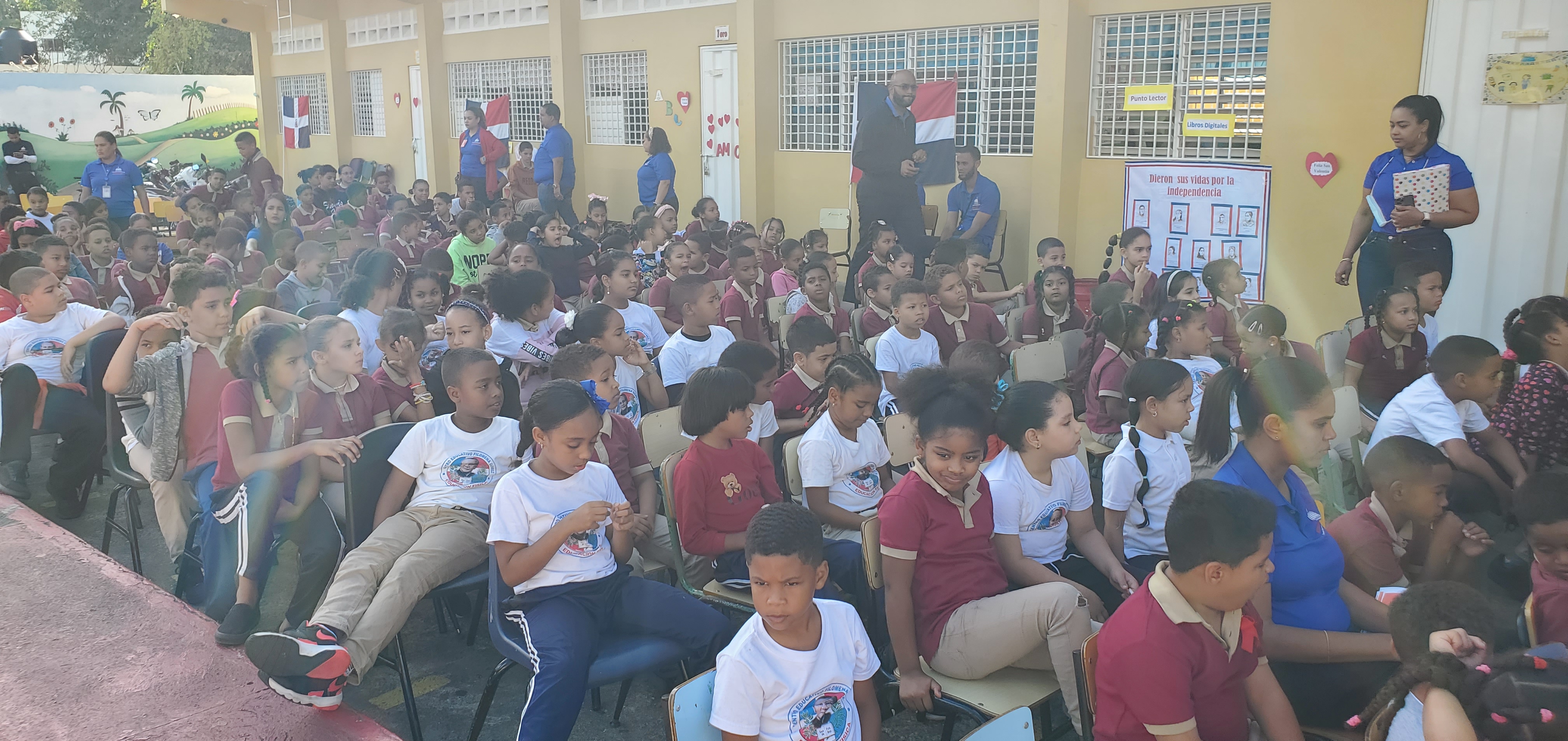 Los niños del 4to. grado de primaria realizaron una poesía con el Himno Nacional. Los estudiantes del 1er. grado de secundaria realizaron un simulacro sobre la confección de la Bandera Nacional, acto seguido el estudiante Christopher Soto, del 3ero. de Secundaria realizó un monologo sobre la vida y la obra de Matías Ramón Mella, resaltando su importantísimo papel en el proceso de Independencia. Los estudiantes de 6to. grado de primaria realizaron un baile con la canción Canto a la Patria en forma de pantomima. A continuación, las estudiantes del 2do. y 3ro. de secundaria hicieron una pasarela de las mujeres de Febrero y se refirieron al papel jugado por cada una de ellas en la lucha independentista, hasta ver cristalizado el sueño de ver el país libre e independiente de la invasión Haitiana, dando el cierre a la actividad, y la conclusión de la actividad estuvo a cargo de la Docente Eleuteria Ventura del área de Educación Artística con el cuerpo de baile de la escuela realizaron una presentación artística.